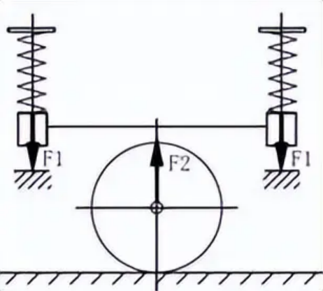 杠桿式減震機(jī)構(gòu)工作原理: